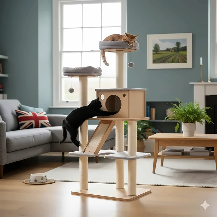 High-energy cats benefit from floor-to-ceiling models or trees with integrated toys. The PawHut adjustable ceiling tree receives consistently positive feedback from Bengal owners on UK forums.