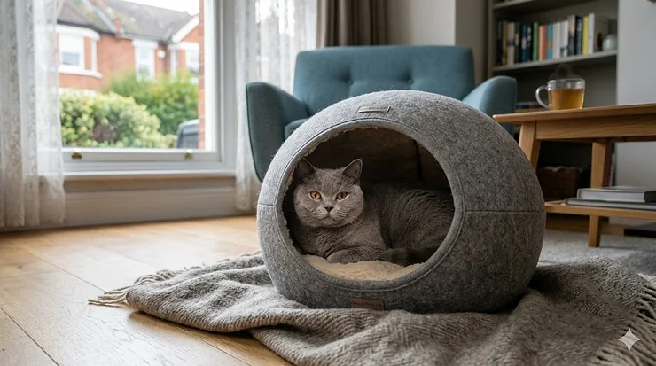 What many UK cat owners miss is that enclosed beds must actually enclose. Those decorative cave beds that collapse flat the moment a cat steps inside? They’re aesthetically pleasing paperweights, not functional anxiety management tools. Proper enclosed beds maintain structural integrity even when your 6kg British Blue launches themselves inside at speed, which requires robust construction rather than decorative fluff.